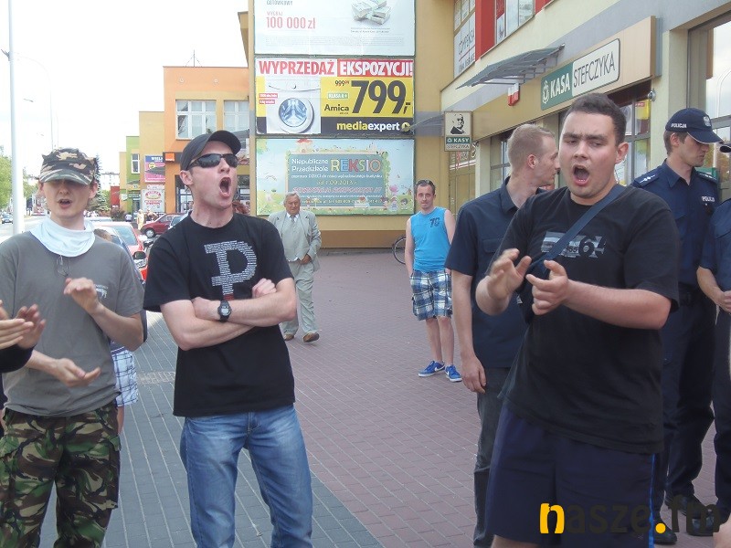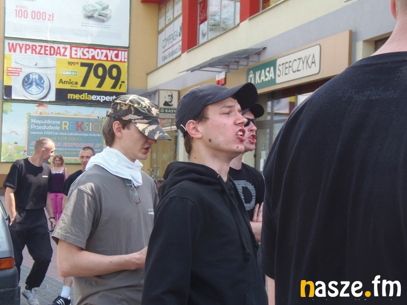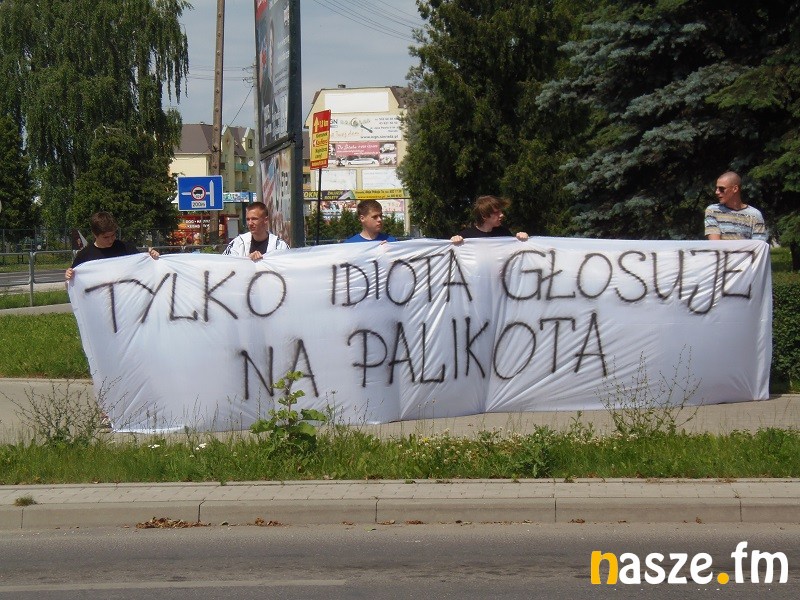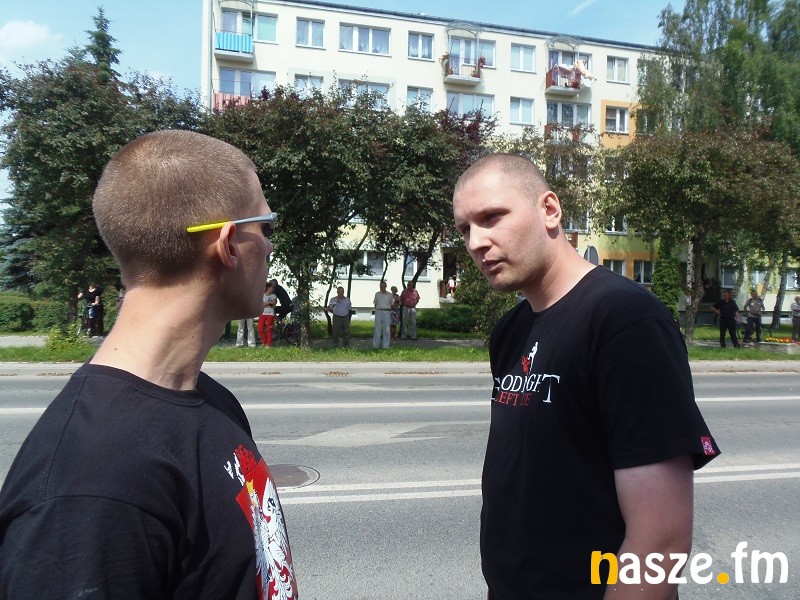 - No niestety wszędzie w Polsce są takie grupki, przed chwilą tu w Sieradzu, a parę godzin w Łodzi, także w Rzeszowie kilka dni temu. Właśnie gdzie się nie pojedzie przychodzą takie dziesięcio, piętnasto, dwudziestoosobowe grupki, one nie są duże, ale to grupy agresywnej młodzieży, w takiej trochę faszyzującej retoryce, obrażające brutalnie, prymitywnie, zakłócające spotkania. Niestety oni są często ofiarami bardzo niesprawiedliwej polityki społecznej, bardzo często są ofiarami nadmiernej indoktrynacji kościoła. Nie oddamy polskich ulic i polskich miast w ręce, i gardła faszystów.