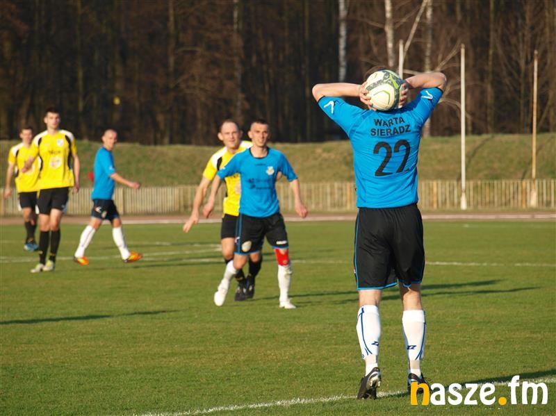Pierwszy strzał na bramkę Ursusa oddał Michał Stasiak w 9. minucie, ale piłka po jego uderzeniu minęła słupek. Począwszy od 23. minuty zaczęło sie robić ciekawie pod obydwiema bramkami. Najpierw Dominika Puska próbowal zaskoczyć Michał Pietras, ale jego uderzenie bramkarz gości zlapał, chwilę później z pola karnego strzelal Łukasz Mitek, ale techniczne uderzenie okazało się zbyt słabe i Pusek wyłapał je bez trudu. Po chwili w opałach był Kamil Adamek, który sparowal na poprzeczkę silny strzał głową Radionowa. Kiedy ciężar gry ponownie przeniósł się pod pole karne Ursusa, padł pierwszy gol. Przemek Sosnowski wyrzucił piłkę z autu na wyskości pola karnego, a celnym strzałem głową popisał się Michał Bogdan. Kiedy wydawało się, że sieradzanie zejdą na przerwę z jednobramkowym prowadzeniem, koszmarny błąd przytrafiał się Adamkowi. Bramkarz Warty łapał pozornie niegroźny strzał z dystansu Patryka Kamińskiego, ale wypadła mu z "koszykczka" i znalazła się za linią bramkową. Do przerwy wynik brzmiał 1:1.