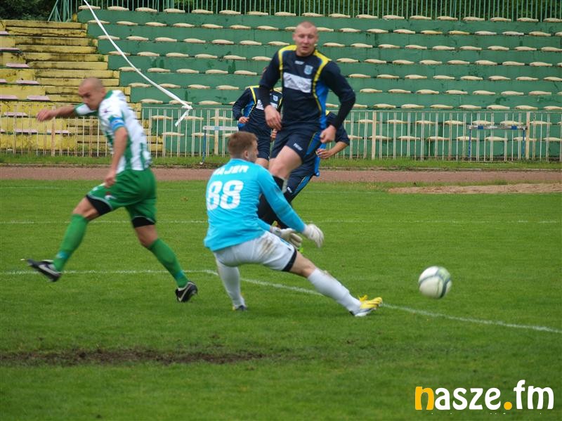 Gospodarze najlepsze sytuacje bramkowe w pierwszej części spotkania stworzyli sobie w 13. i 34. minucie. Najpierw z narożnika pola karnego strzelał Przemysław Różycki, później mocno, ale niecelnie główkował Patryk Krymarys.