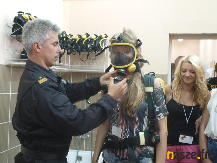 Po oficjalnym powitaniu "missek" u prezydenta Jacka Walczaka dziewczęta pojechały z wizytą do jak zwykle gościnnych sieradzkich strażaków. Atrakcji było co niemiara, bo po krótkiej przejażdżce wozami bojowymi trzeba było pokonać komorę dymową, a potem wytrzymać "próbę ognia" w domku pożarowym. Na koniec dziewczęta mogły spróbować zjazdu na tzw. tyrolce z drugiego piętra ćwiczebnej wspinalni.