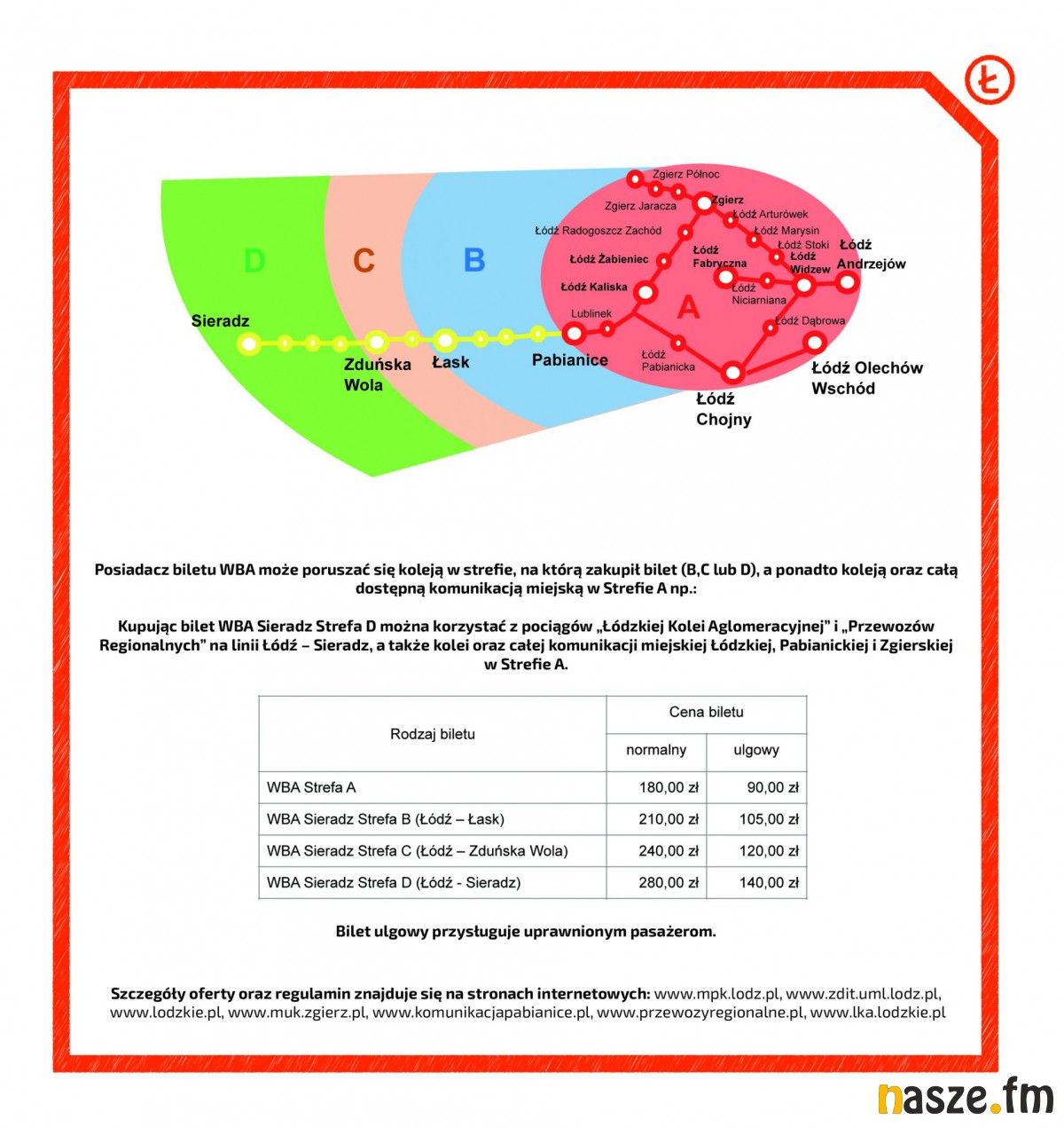 Mieszkańców Sieradza dojeżdżających często do Łodzi interesować będzie WBA na strefę D+. Sama strefa D zawiera bilet na trasie Sieradz - Łódź, wraz z migawką 30-dniową na łódzkie MPK. Plus oznacza dodatkowe przejazdy sieradzkim MPK, co ostatnio na sesji uchwaliła Rada Miasta Sieradza. Ponadto posiadając WBA na D+ podróżnym przysługiwać będą przejazdy komunikacją miejską w Pabianicach i Zgierzu.