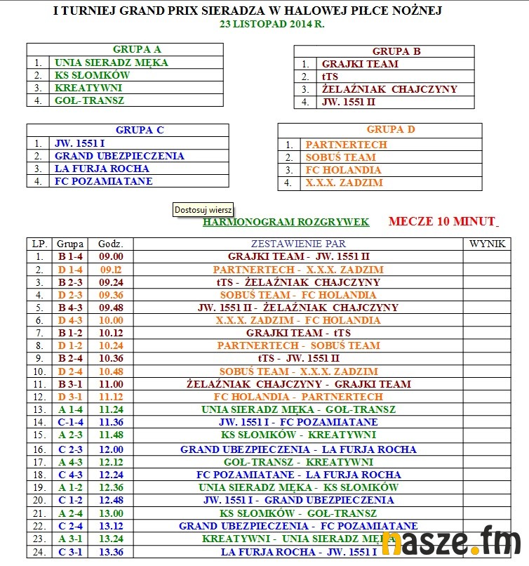 W pierwszym turnieju nowego sezonu wystąpi 16 drużyn, spotkania będą się odbywać tradycyjnie, w hali przy ul. Mickiewicza. Poniżej harmonogram gier grupowych.