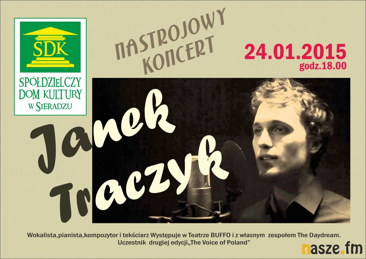 Na taki nastrojowy koncert zaprasza już jutro Spółdzielczy Dom Kultury w Sieradzu. Jego gwiazdą będzie Janek Traczyk - wokalista, pianista, kompozytor i tekściarz. Młody artysta występuje w Teatrze Buffo w Warszawie i w całym kraju z zespołem The Daydream.