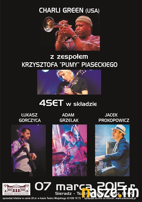 W sobotę 7 marca w Teatrze Miejskim w Sieradzu wystąpi Charli Green (USA) z zespołem Krzysztofa "Pumy" Piaseckiego "4SET". - Zagrają muzykę dla każdego, to nie będzie jakiś bardzo skomplikowany jazz - wyjaśnia zapowiadając wydarzenie Romuald Erenc, dyrektor Sieradzkiego Centrum Kultury.