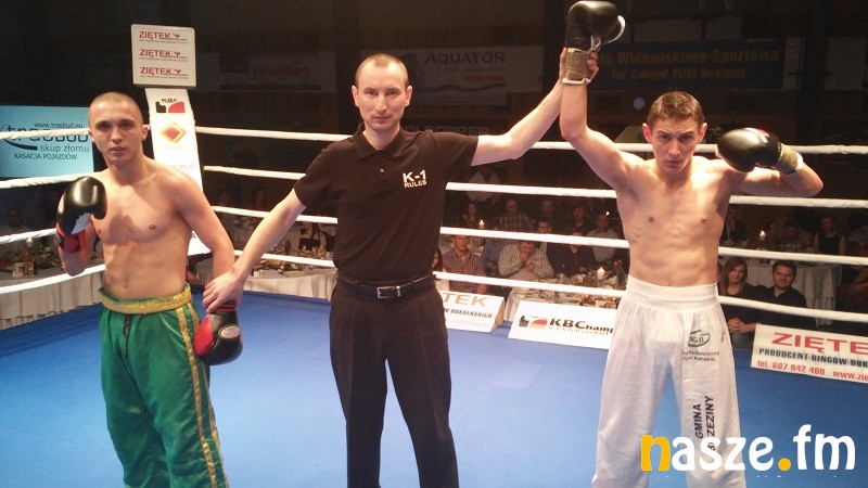 Mieszkaniec gm. Błaszki Robert Niedźwiedzki (na zdjęciach w białych spodenkach), niedawny zdobywca Pucharu Świata w kickboxingu wziął udział w swojej pierwszej zawodowej gali. W Kępnie Robert walczył w formule full contact & K1 w kat. 60 kg. Reprezentant Ziętek Team pokonał jednogłośnie na punkty Jerzego Zambrowskiego.
