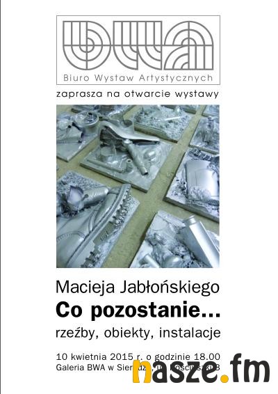 W najbliższy piątek, w Biurze Wystaw Artystycznych w Sieradzu odbędzie się otwarcie wystawy Macieja Jabłońskiego pt. "Co pozostanie..."