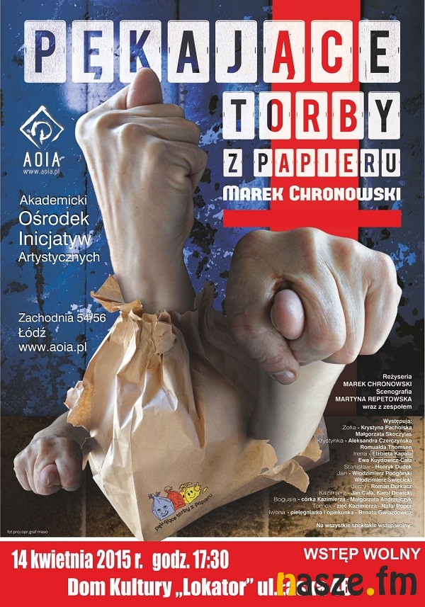 "Pękające torby z papieru" to tytuł sztuki teatralnej Marka Chronowskiego, którą będzie można zobaczyć jutro w Domu Kultury "Lokator" w Zduńskiej Woli.