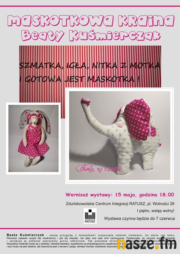 Beata Kuśmierczak - swoją przygodę z maskotkami rozpoczęła całkiem niedawno, bo około rok temu. Pierwsze zabawki uszyła dla siostrzenicy i jak się okazało, nie tylko ona była nimi zachwycona. Postanowiła, że zacznie szyć przytulanki i spróbuje je pokazać szerszemu gronu odbiorców. Tak powstała strona na facebooku "Maskotkowa Kraina". Wszystkie maskotki szyte są z polskiej i włoskiej bawełny, wypełnione są antyalergicznym wypełniaczem silikonowy - czytamy na stronie internetowej Miejskiego Domu Kultury w Zduńskiej Woli.