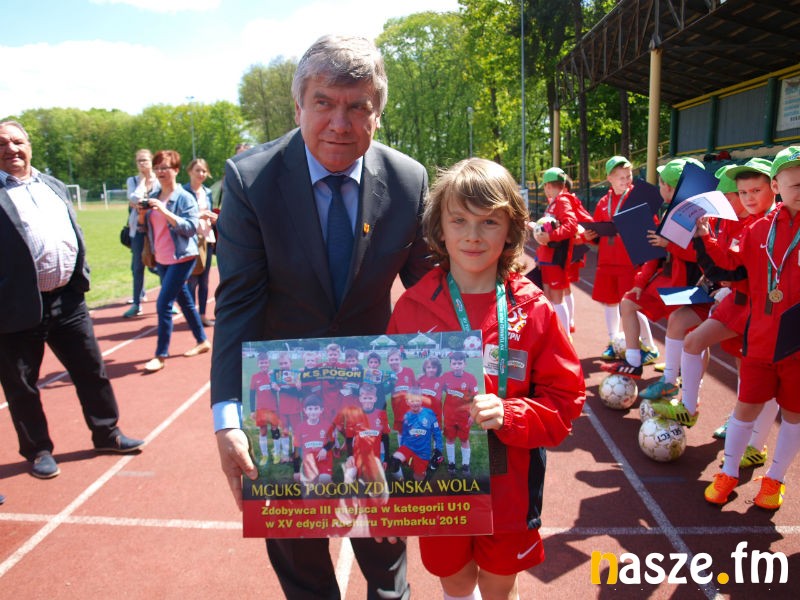 Turniej "Z Podwórka na Stadion o Puchar Tymbarku" istnieje od 14 lat. To największy turniej piłkarski dla dzieci w Europie, w którym do tej pory wzięło udział ponad 700 tys. dziewcząt i chłopców z całego kraju. Zakończenie turnieju jest wyjątkowe, bo mecze finałowe rozgrywane są na Stadionie Narodowym w Warszawie. W zakończonej w maju XV edycji drużyna Pogoni Zduńska Wola do lat 10 wywalczyła trzecie miejsce. Marszałek województwa łódzkiego Witold Stępień spotkał się dziś z młodymi piłkarzami na Stadionie Miejskim w Zduńskiej Woli. Wręczył im listy gratulacyjne oraz piłki.