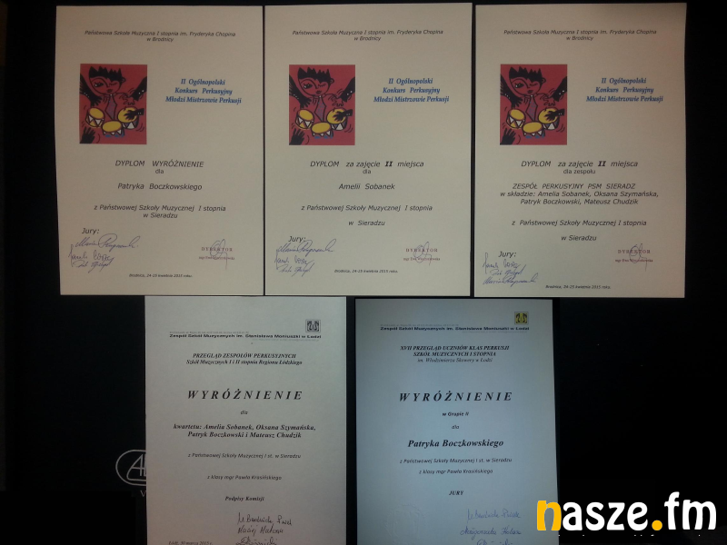 Sieradzka szkoła muzyczna na przestrzeni lat może się pochwalić uczniami, którzy zdobywali nagrody w ogólnopolskich konkursach. Kolejnym przykładem są młodzi mistrzowie instrumentów perkusyjnych.