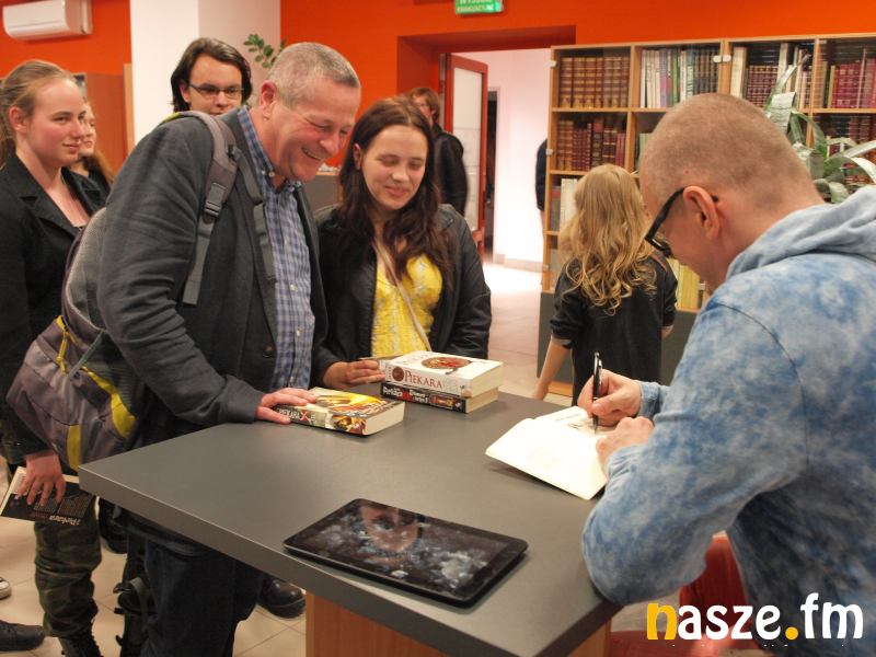 Piekara zadebiutował w 1983 r. opowiadaniem "Wszystkie twarze szatana" w czasopiśmie Fantastyka. Pisarz na koniec spotkania rozdawał uczestnikom autografy.