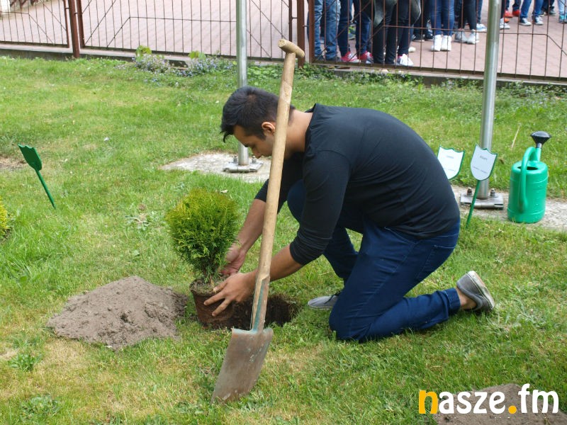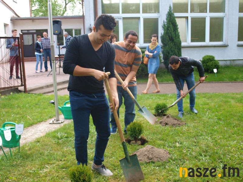 Wczoraj na pamiątkę swojej wizyty posadzili przed szkołą drzewka w tzw. alei Młodzieży Świata.