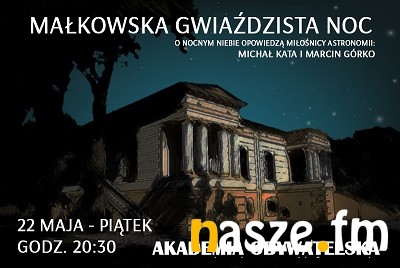 W najbliższy piątek (22 maja) w pałacu w tej miejscowości odbędzie się spotkanie z pasjonatami astronomii. Będzie okazja, żeby nieuzbrojonym okiem, jak i za pomocą teleskopu podziwiać gwiazdy i planety. Spotkanie rozpocznie się o 20:30, wstęp wolny.