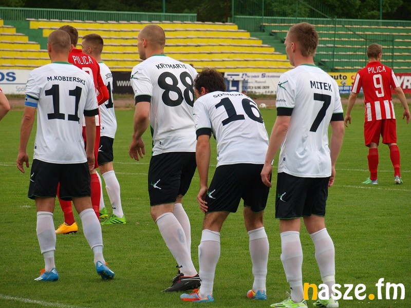 W szeregach gospodarzy zabrakło dziś kilku zawodników, których z gry wyeliminowały kartki lub kontuzje (Michał Stasiak, Michał Bogdan, Tomasz Różycki, Mikael Idzikowski), ale ci, którzy ich zastąpili udźwignęli ciężar meczu. Już w 10. minucie gospodarze cieszyli się z gola po strzale Jarosława Szyca. Gracz Warty dostał piłkę w pole bramkowe i ładnym uderzeniem z woleja pokonał Pawła Młodzińskiego. Najlepszą okazję do podwyższenia wyniku miał w 21. minucie Kacper Jezierski, który miał dużo czasu do strzału i wybrał wariant techniczny, niestety piłka minimalnie minęła słupek bramki Pilicy. Goście też mieli swoje okazje, ale na posterunku był Kamil Adamek. W drugiej połowie boisko opuścił strzelec gola, który już w pierwszej części doznał urazu nosa. Szyc wyszedł na boisko, ale po 10. minutach musiał je opuścić i udał się do szpitala, okazało się, że nos jest złamany. Już po meczu żartowano, że trzeba będzie pożyczyć maskę od Roberta Lewandowskiego, by zawodnik Warty mógł w niej zagrać w następnym spotkaniu. Druga połowa przebiegała pod dyktando Warty, ale klarownych sytuacji bramkowych było mało. Obydwa zespoły ambitnie walczyły o zmianę rezultatu,ale wynik do końca nie uległ zmianie. Warta wygrała trzeci mecz z rzędu i nadal może myśleć o zajęciu wysokiego miejsca na zakończenie sezonu. Teraz jest na 6. miejscu, ale do ŁKS i Pelikana traci już tylko 2 punkty. W dwóch ostatnich meczach sieradzanie zagrają: z Radomiakiem (na wyjeździe) i z Sokołem Aleksandrów (u siebie).