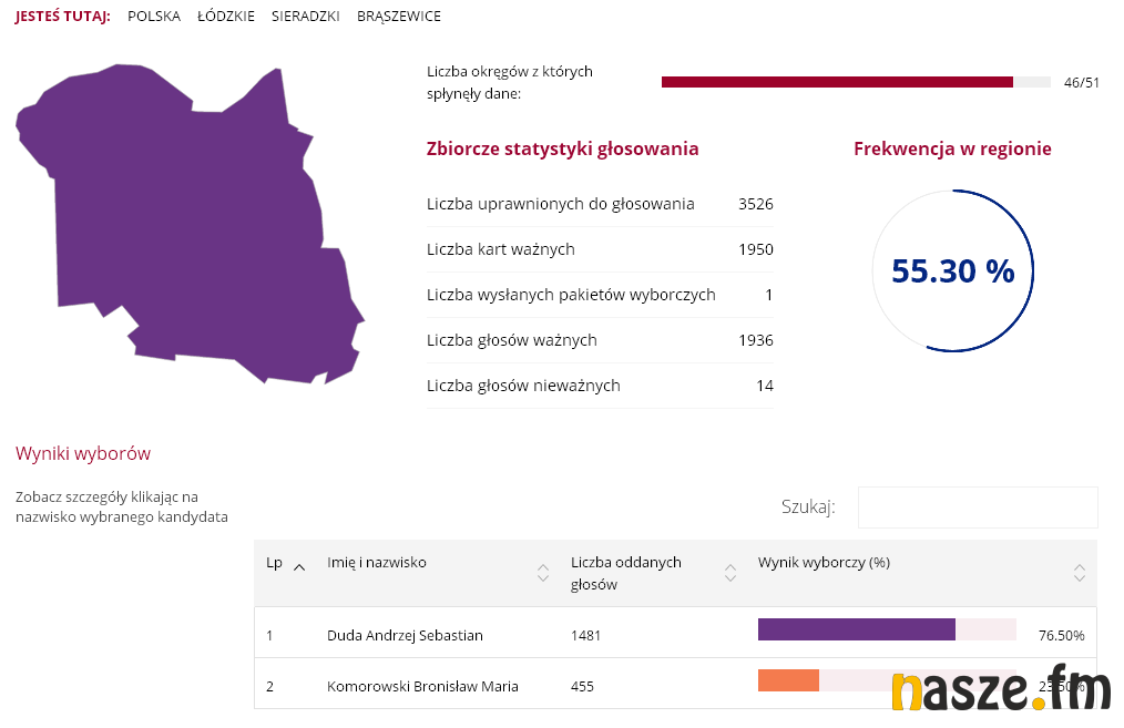 W gminie Brąszewice padł rekord poparcia dla Andrzeja Dudy, który zdobył aż 76,5 proc. głosów.