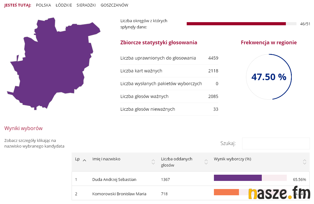 W Goszczanowie Andrzej Duda zdobył 65,56 proc. głosów.