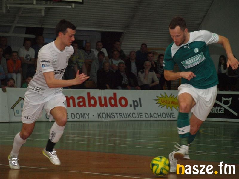 Kibiców zgromadzonych w hali przy ul. Złotej po raz pierwszy ucieszył zduńskowolanin Krzysztof Adamski, który świetnie przyjął piłkę zagraną przez Daniela Krawczyka i w pełnym biegu huknął nie do obrony na bramkę Rekordu. Goście odpowiedzieli w 9. minucie trafieniem Artura Popławskiego, ale ostatnie chwile w pierwszej części spotkania należały do gospodarzy. W 16. minucie Michała Kałużę pokonał Krawczyk i do przerwy Gatta prowadziła 2:1.