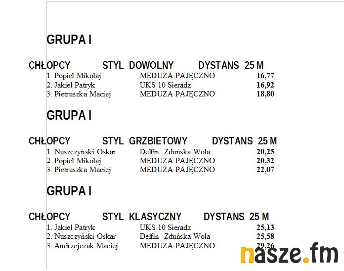 Do Sieradza przyjechali pływacy z Łasku, Pajęczna i Zduńskiej Woli. Zawody przeprowadzono w kilku kategoriach wiekowych, od najmłodszych klas szkół podstawowych do szkół ponadgimnazjalnych i kategorii open.