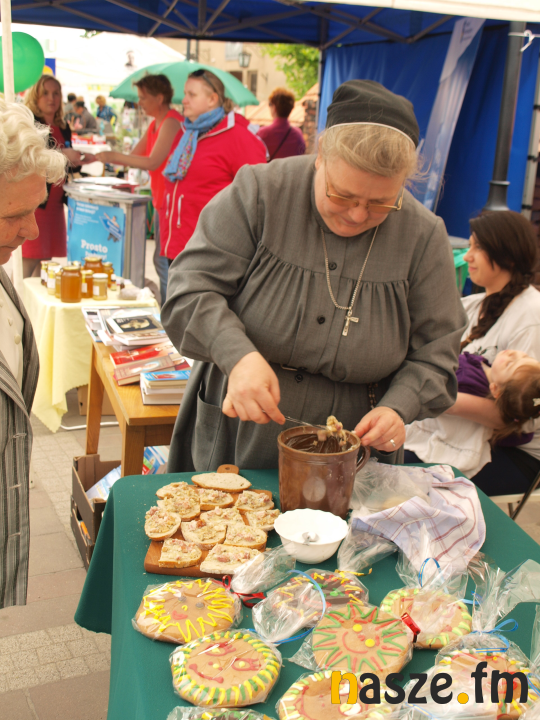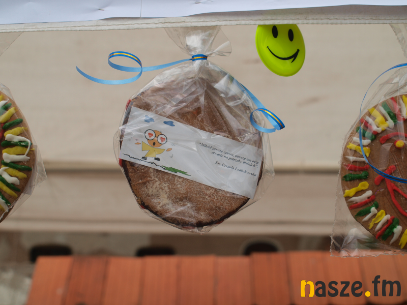 - Mamy tu też wyroby z piernika, tu na przykład jest wypiek zwany "uśmiech św. Urszuli" - wyjaśnia siostra Gabriela - Tym chcemy wesprzeć siostry w Sieradzu i remont klasztoru. Jest to maleńki nasz wkład w to. Miałyśmy też kanapki ze smalcem, ale był to towar pierwszej potrzeby, więc już się sprzedał.