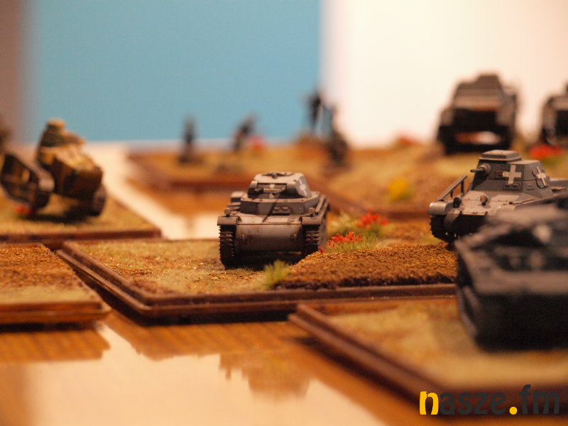 - W skrócie mówiąc, w bitewniakach chodzi o odtworzenie jakiejś bitwy, czy to z prawdziwej, która miała miejsce w historii, tak jak to jest w naszym przypadku, czy książkowej, na przykład fantastycznej, s-f - mówi Grzegorz Molczyk, współtwórca gry historycznej "Bogowie Wojny - Napoleon" - W tym przypadku odtworzyliśmy okres napoleoński, lata 1812 - 1815. Odtwarzamy bitwę pod Lipskiem, ponieważ skala tego terenu jest taka, że 30 cm tu na planszy to 1 km. Jedna podstawka, na której znajduje się trzech żołnierzy w skali 1:72, to jest ok. 600 żołnierzy. Chodziło nam o to, aby gracze poczuli się wodzami z tamtej epoki.