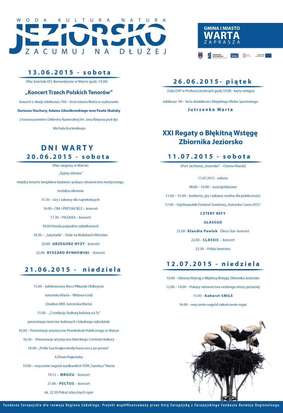 Poniżej zamieszczamy daty innych najważniejszych wydarzeń organizowanych w gminie i mieście Warta na jubileusz 760-lecia.
