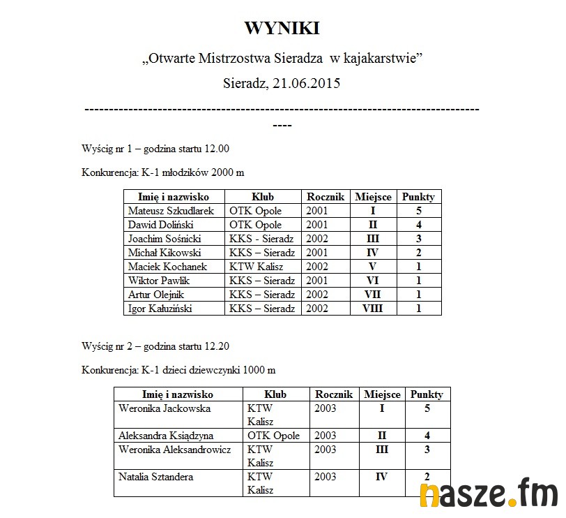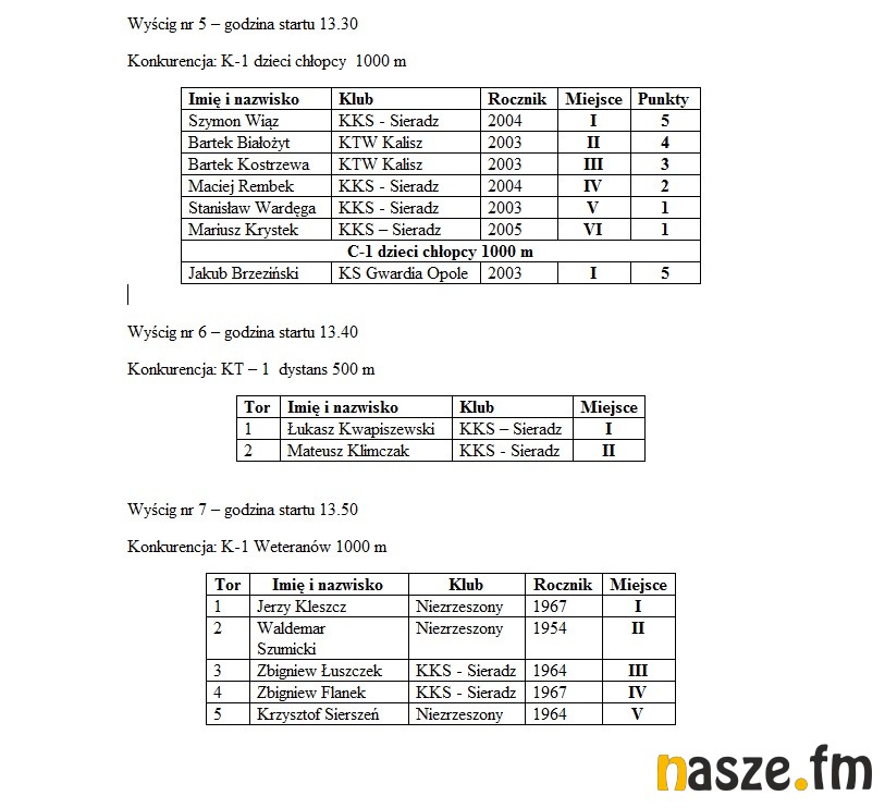 Wczoraj nad Wartą rozegrano Otwarte Mistrzostwa Sieradza w kajakarstwie. W zawodach uczestniczyły cztery kluby: KS Gwardia Opole, OTK Opole, KTW Kalisz i Kajakowy Klub Sportowy z Sieradza. W wyścigach mogli równiez wziąć udział zawodnicy niezrzeszeni.