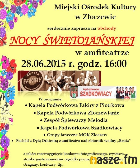 W ramach tych obchodów w najbliższą niedzielę (28 czerwca) na scenie złoczewskiego amfiteatru wystąpią Kapele Podwórkowe: FAKIRY z Piotrkowa, Szadkowiacy i Złoczewianie. Zaprezentują się również Zespół Śpiewaczy Melodia i taneczne formacje ze złoczewskiego MOK-u. Początek o godz. 16:00, wstęp wolny.