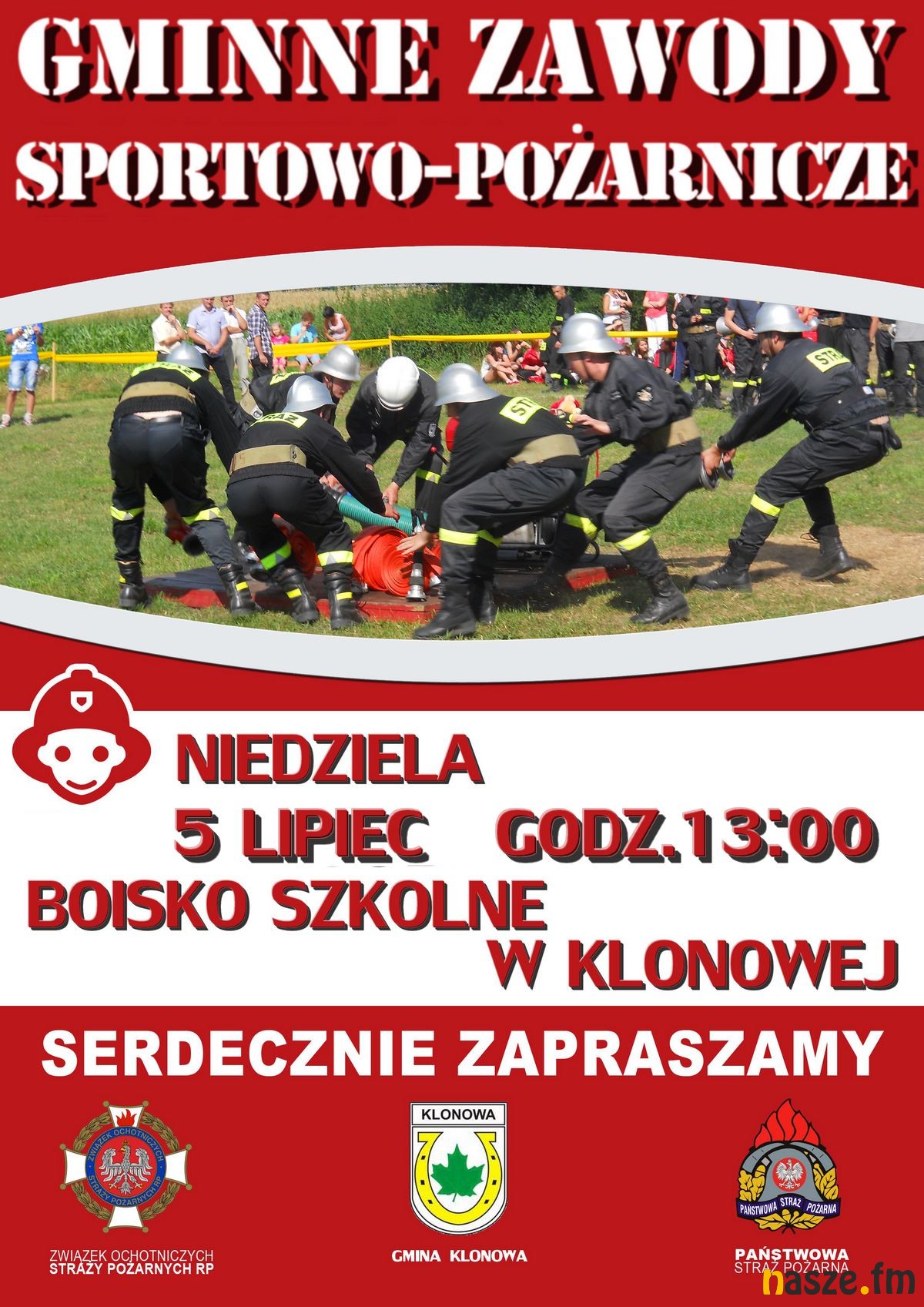 Zapraszamy na Gminne Zawody Sportowo - Pożarnicze w Klonowej. Impreza odbędzie się w najbliższą niedzielę na boisku przy miejscowym Zespole Szkół.