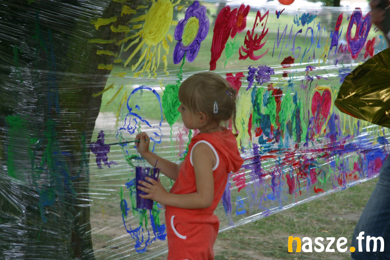 Piknik "Sieradz by the colours" skierowany był głównie na kreatywność dzieci, które malowały na folii i gipsowych płytkach, robiły latawce i grały w gry planszowe w rozmiarze XXL. Dużym zainteresowaniem cieszyły się akrobacje na wstęgach, chodzenie po linie i bańki mydlane.