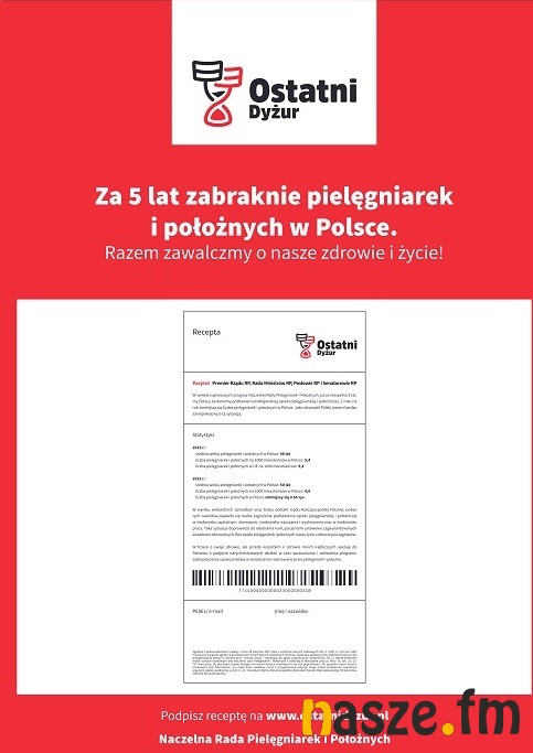 "Ostatni dyżur" - pod takim hasłem Naczelna Rada Pielęgniarek i Położnych uruchomiła ogólnopolską kampanię. Akcja kierowana jest przede wszystkim do rządzących, którzy zdaniem pielegniarek, nie zauważają ich problemów.