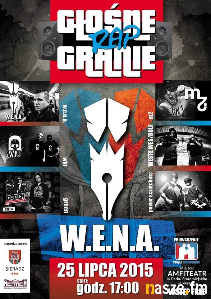 Hip-hop będzie rządził w sobotni wieczór w sieradzkim amfiteatrze. Na scenie w Parku Staromiejskim wystąpią m.in. W.E.N.A., WKT i m2. Imprezę poprowadzą Power Scratchers.