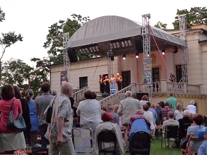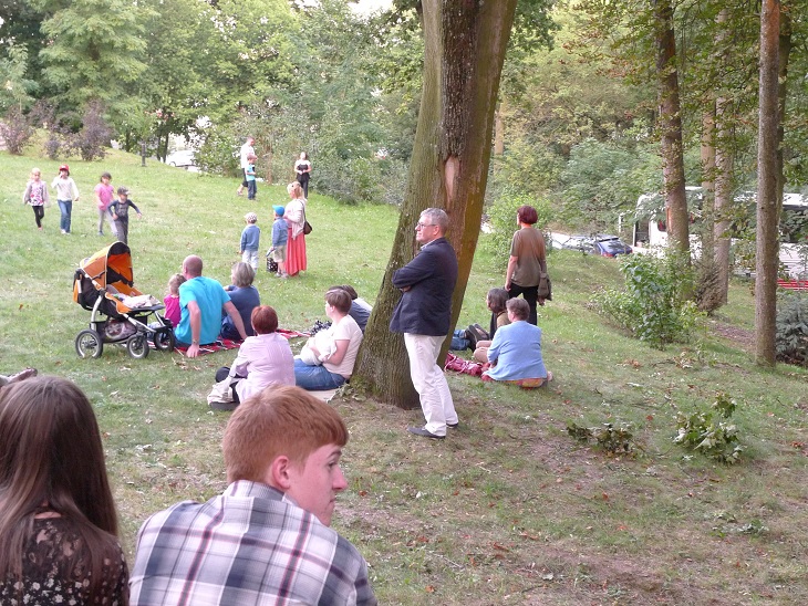 W parku za pałacem zgromadziło się około dwóch tysięcy osób. Jedni na koncert przybyli na tyle wcześnie, by korzystać z już przygotowanych miejsc, inni z odpowiednim wyposażeniem, nie brakowało też innych rozwiązań.