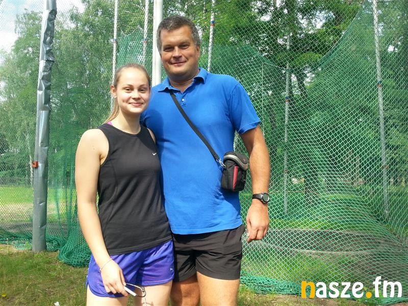 Kamila Błaszczyk (MUKS PARK Zduńska Wola, na zdjęciu z trenerem Tomaszem Szewczykiem) zdobyła dziś złoty medal w konkursie rzutu młotem z nowym fantastycznym rekordem życiowym 57,83 m! Kamila już w eliminacjach poprawiła życiówkę (53,64), rzucając z dwóch obrotów. W finale, już z trzema obrotami w pierwszej próbie poprawiła ten wynik (54,69 m), a w drugiej posłała młot na odległość blisko 58 metrów. Piąte miejsce w finale biegu na 400 m zajął inny reprezentant klubu PARK Patryk Krupiński. Zduńskowolanin ukończył bieg w czasie 49,53 sek. niewiele gorszym od swojego rekordu życiowego, pobitego w biegu eliminacyjnym (49,31). Najdalej w karierze rzucał także Mateusz Juchner z Żegliny w konkursie rzutu oszczepem. Sieradzanin awansował do finału z trzecim rezultatem eliminacji i rekordem życiowym 59,67 m, jednak dziś rywale rzucali jeszcze dalej. Mateusz poprawił wprawdzie swoją życiówkę (59,74), ale wystarczyło to do zajęcia 7 pozycji. Dobrze spisał się debiutujący w mistrzostwach Arkadiusz Maruszewski z MULKS Żeromski Sieradz na dystansie 2000 m z przeszkodami. Zawodnik, który trenuje zaledwie od kilu miesięcy zajął w swoim biegu 5. miejsce z rekordem życiowym 6:43.19, co dało 14 miejsce w Polsce.