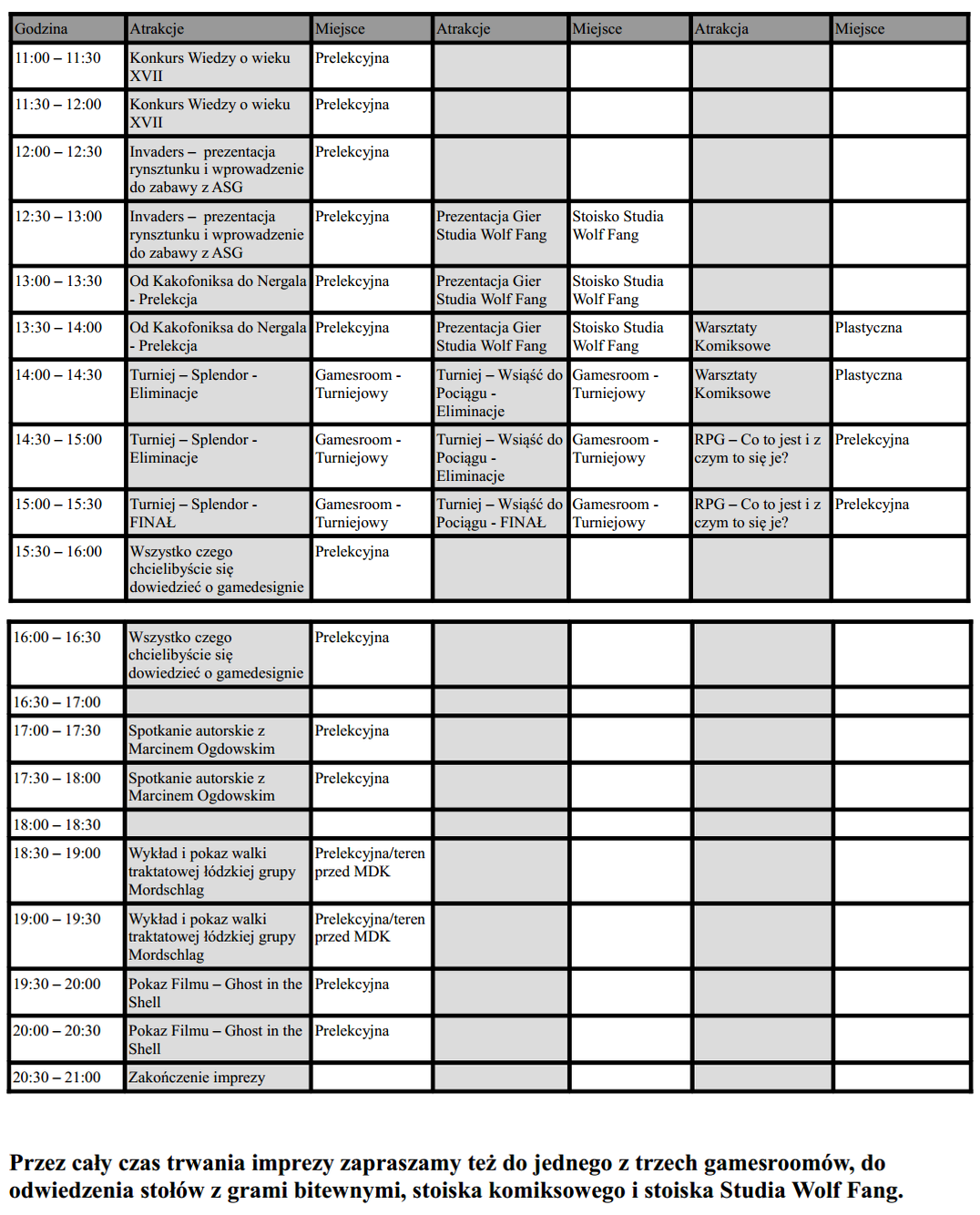 - Stoisko Studia Wolf Fang z Krakowa, które będzie prezentowało prototypy swoich gier i zachęcało do włączenia się w proces twórczy,