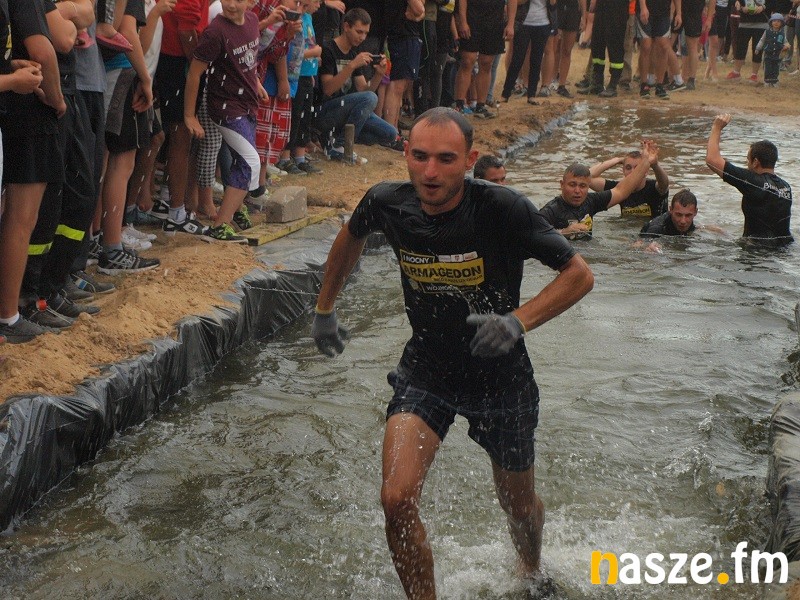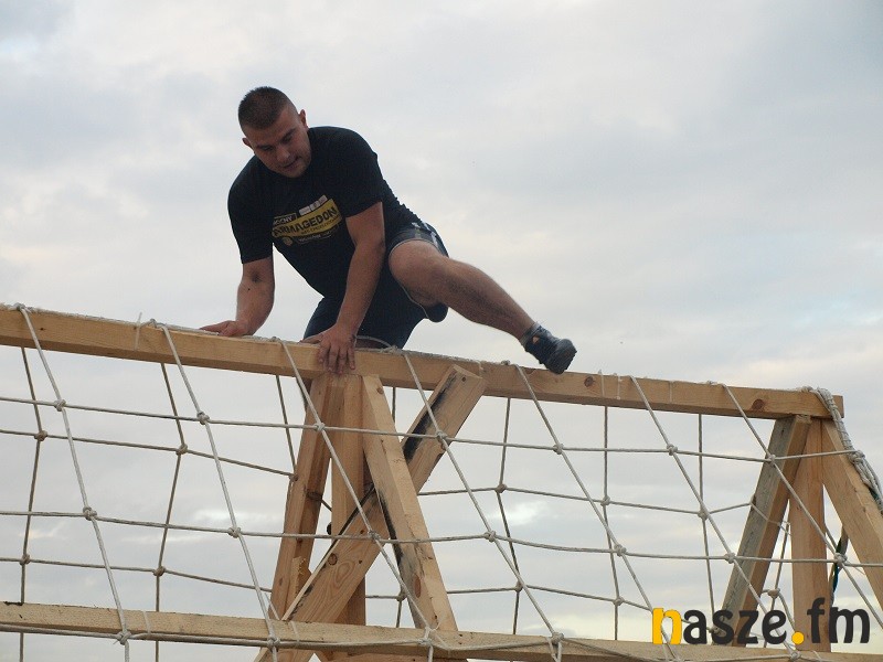 Zawodnicy mieli do pokonania trasę o długości 4,3 km, najeżoną przeszkodami. Już pierwsza z nich wymagała odwagi, chodziło o przepłynięcie 12-metrowego rowu z wodą pod zasiekami z drutu kolczastego. Pracy zespołowej wymagała następna przeszkoda - trzymetrowa ściana. Dalej było teoretycznie łatwiej, ale zmęczenie sprawiało, że nawet z pozoru łatwe zadania okazywały się wymagające. Nie brakowało także niespodzianek. Na krótkim, asfaltowym odcinku drogi na biegaczy czekali rycerze, którzy nie byli nastawieni pokojowo i jak tylko mogli utrudniali życie uczestnikom Armagedonu. Na zakończenie - tuż przed metą - czekał jeszcze zimny prysznic - i to dosłownie. Kontener z zimną wodą skutecznie schładzał rozgrzane biegiem ciała. Tuż za metą na każdego czekał pamiątkowy medal i gorący posiłek. Najważniejsza jednak była duma z ukończenia biegu. Choć najlepsi odebrali puchary, zwycięzcą mógł się czuć każdy, kto ukończył dzisiejszy bieg.