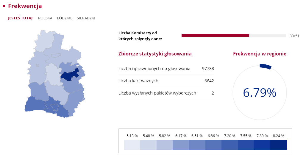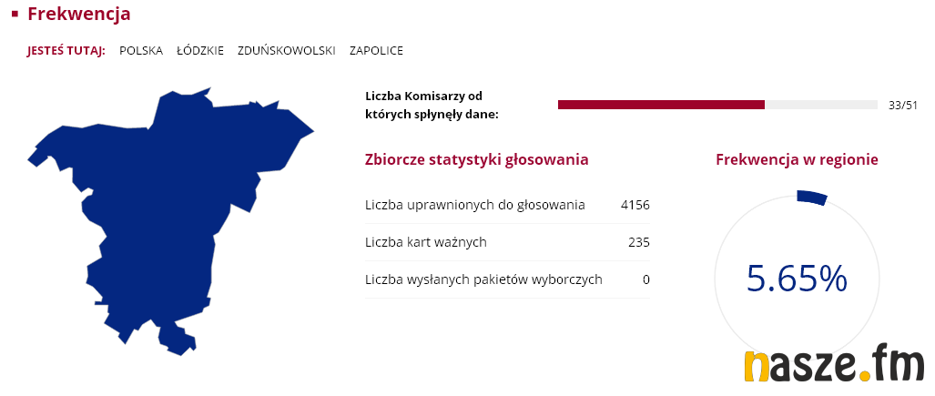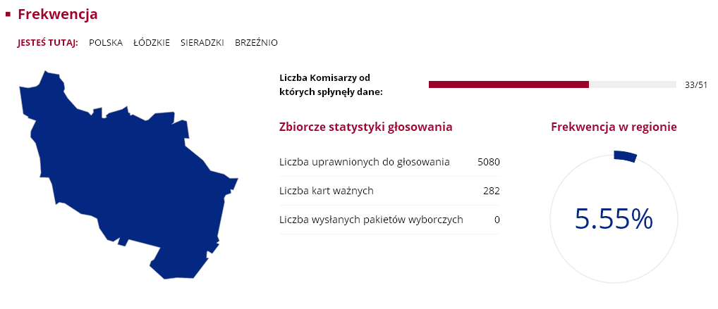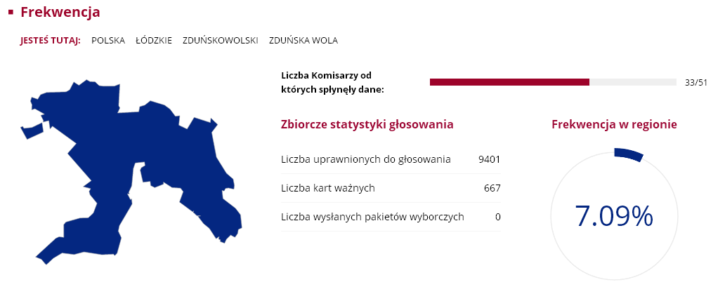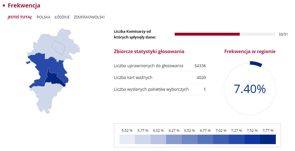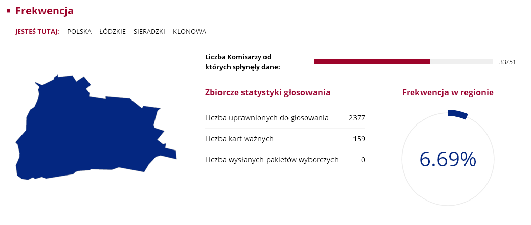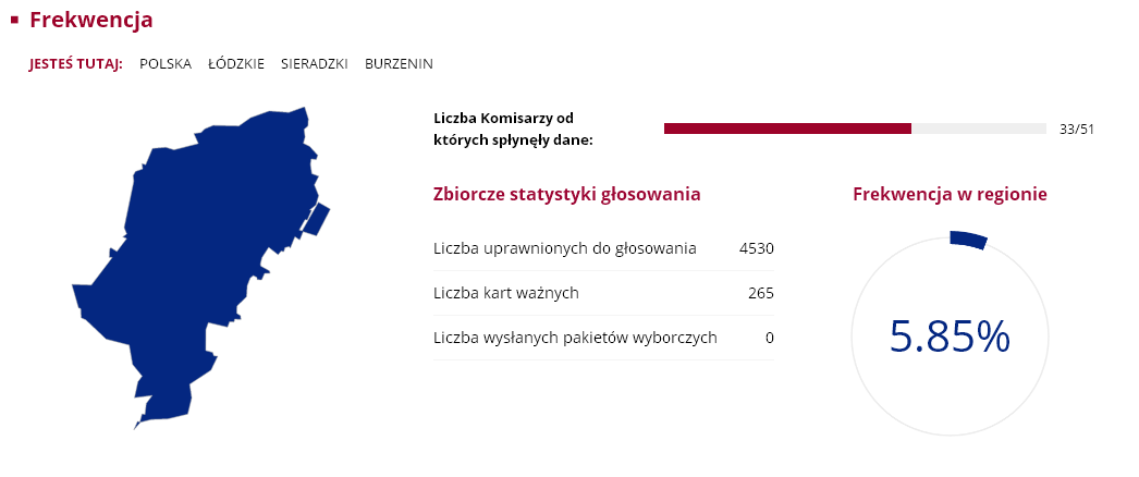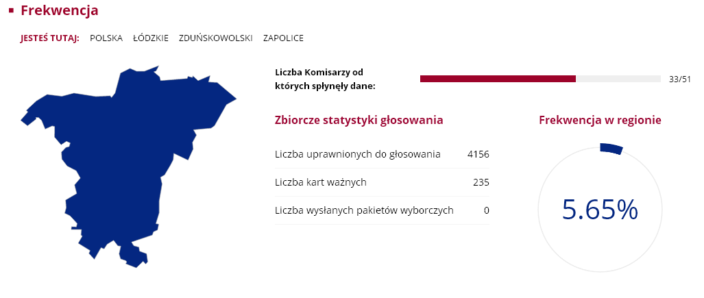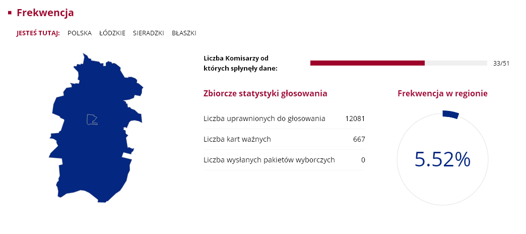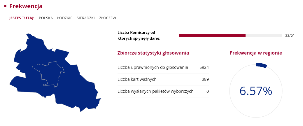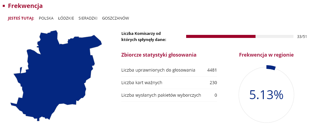 Nasz region nie odbiega szczególnie od średniej frekwencji w całym kraju, która wyniosła zaledwie 7.8 proc. Wśród gmin największą atencją poszczycić się mogą Sieradz ze Zduńska Wolą, w których uczestniczyło ponad 8 proc. uprawnionych do głosowania. Najmniejsza frekwencja była w Goszczanowie i Wróblewie, obie gminy miały 5.13 proc. frekwencji. Były jednak takie komisje wyborcze, w których przyszła garstka głosujących. Mowa o komisji w Kuźnicy Błońskiej w gminie Klonowa i Broszkach gminie Złoczew. W jednym i drugim obwodzie zagłosowac przyszło zaledwie... trzynaście osób.