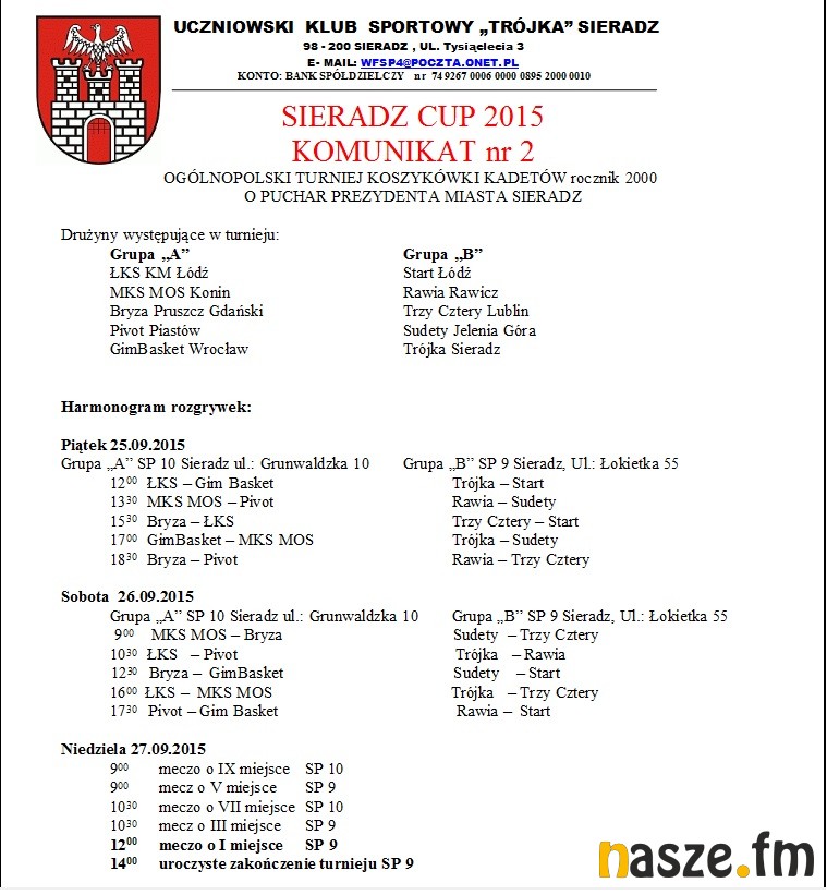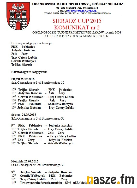 Uczniowski Klub Sportowy Trójka Sieradz był organizatorem Ogólnopolskiego Turnieju Żaków i Kadetów w Koszykówce o Puchar Prezydenta Sieradza. W zawodach wzięło udział 16 drużyn.