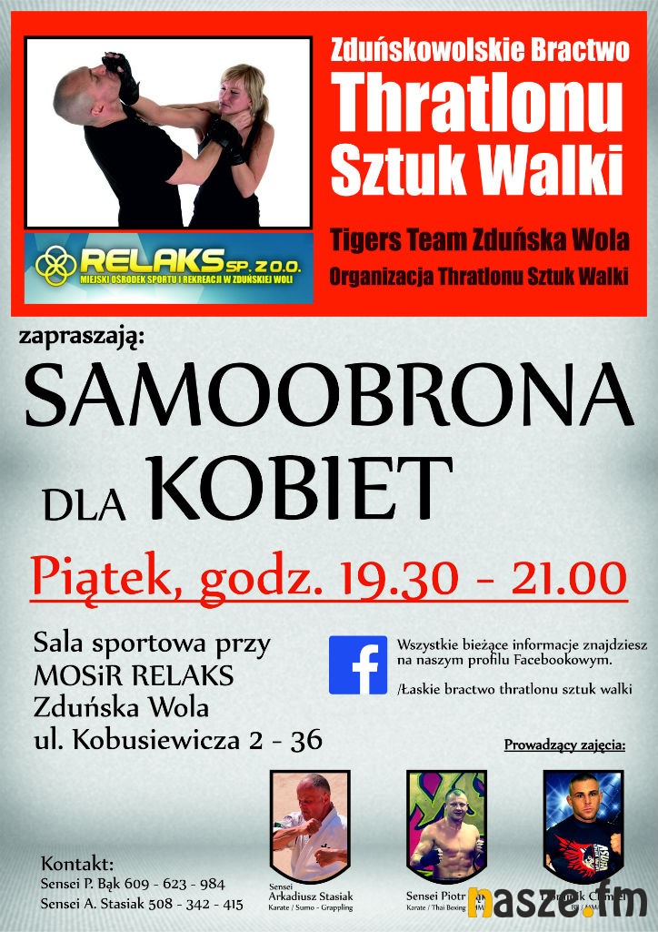Zduńskowolskie Bractwo Thratlonu Sztuk Walki oraz Miejski Ośrodek Sportu i Rekreacji "Relaks" zapraszają wszystkie kobiety na zajęcia z samoobrony. Pierwsze spotkanie odbędzie się w najbliższy piątek (25.09).