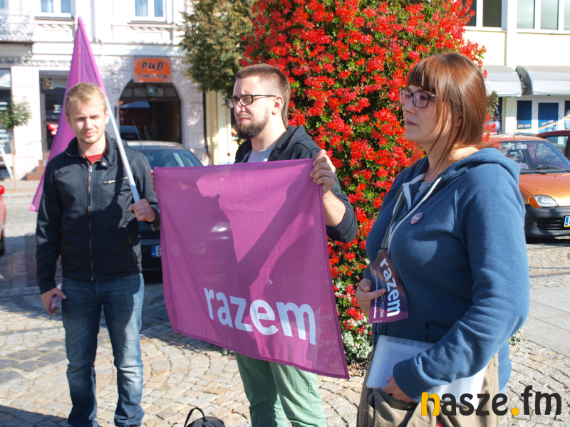 Młoda lewicowa partia Razem uzbierała podpisy w 21 okręgach w Polsce, co daje im możliwość startowania w całym kraju. Dziś na Rynku zaprezentowało się dwóch kandydatów z okręgu sieradzkiego, Mateusz Mirys i Marta Kromkowska.
