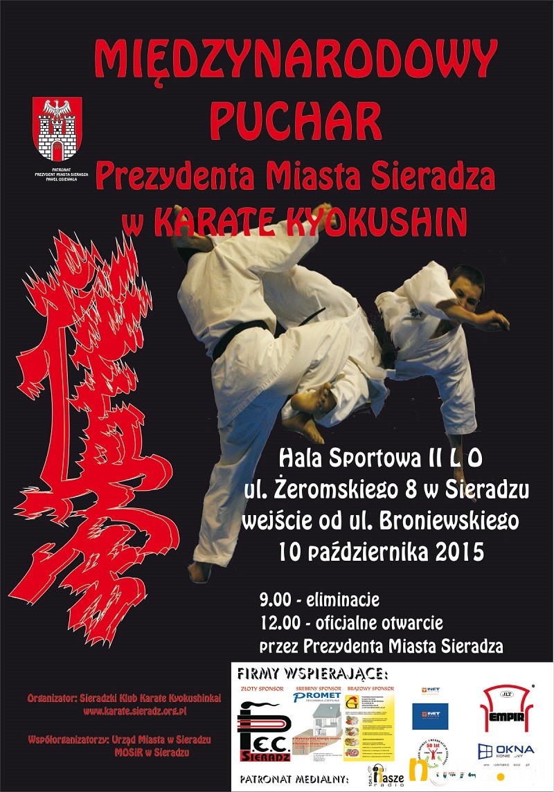 Sieradzki Klub Karate Kyokushinkai zaprasza na Międzynarodowy Turniej o Puchar Prezydenta Sieradza. Impreza odbędzie się w sobotę w hali II Liceum Ogólnokształcącego im. Stefana Żeromskiego.