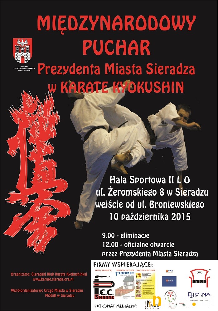Sieradz ponownie będzie areną zmagań karateków z kraju i zagranicy. W hali sportowej przy II Liceum Ogólnokształcącym im. St. Żeromskiego rozgrywany będzie Międzynarodowy Turniej Karate Kyokushinkai o Puchar Prezydenta Sieradza.