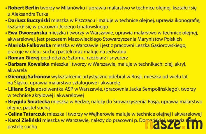 Otwarcie wystawy zaplanowano na godz. 18:00, wstęp wolny. Będzie prezentowana tylko do piątku 25 października. Podczas wernisażu będzie można kupić obrazy.