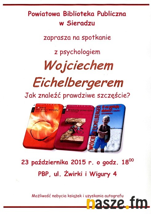 Tak zatytułowane jest spotkanie, które odbędzie się piątek (23 października) w Powiatowej Bibliotece Publicznej w Sieradzu. Jego bohaterem będzie wybitny psycholog, psychoterapeuta i trener - Wojciech Eichelberger.