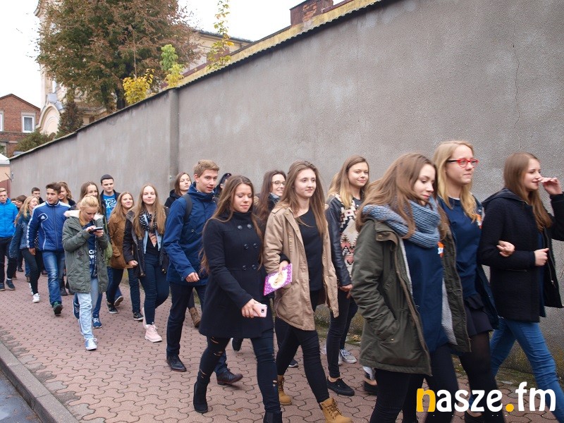 Uczniowie z transparentami i hasłami na ustach przeszli spod budynku szkoły do Parku Miejskiego: