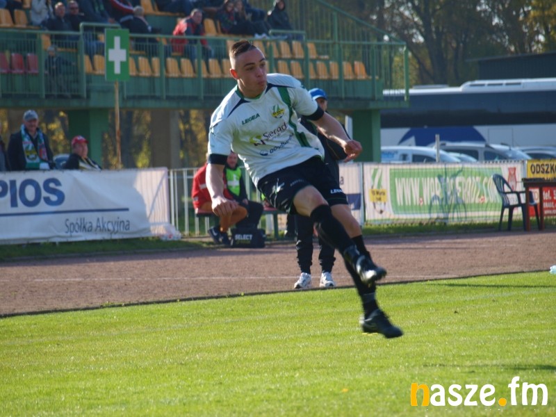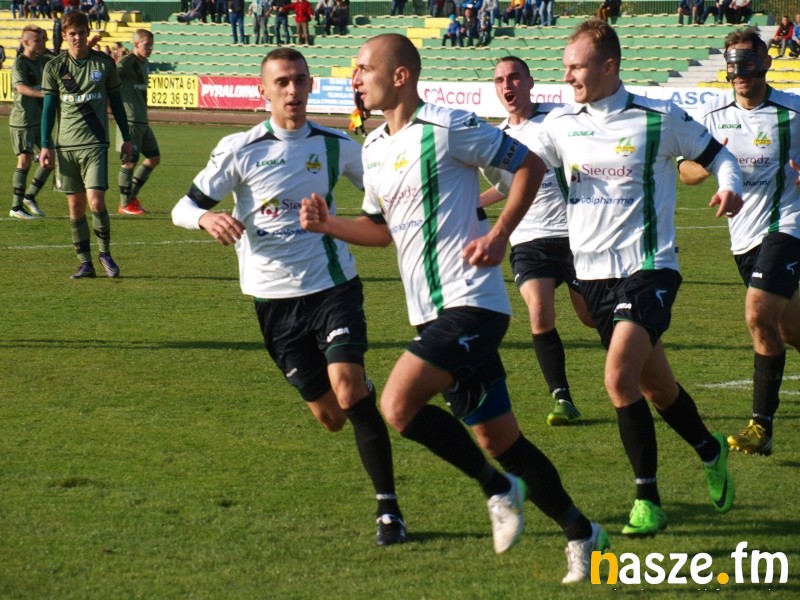 W 25. minucie w jednej akcji biało-zielonych piłka dwukrotnie odbiła się od słupka. Najpierw sytrzelał Marcin Wałęski, a poprawiał Jarosław Szyc. Podopieczni Piotra Kupki nadal atakowali i dopięli swego w 34. minucie, kiedy po kolejnym rzucie rożnym pilka trafiła pod nogi Patryka Krymarysa, a ten płaski strzałem przy słupku pokonał Jakuba Szumskiego. Swoją radość popularny Krymek zaznaczył charakterystycznym gestem smoczka, a następnie (przy pomocy kolegów) kołyską. W ten sposób uczcił urodziny syna.