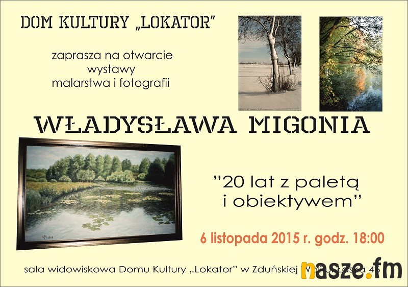 "20 lat za paletą i obiektywem" - to tytuł wystawy, którą już w najbliższy piątek będzie można zobaczyć w Domu Kultury "Lokator". Swoje prace prezentować będzie zduńskowolanin Władysław Migoń.