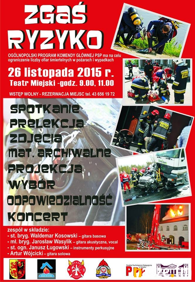 Realizacją kampanii zajmują sie strażacy z poszczególnych komend na terenie kraju. W naszym regionie to m.in. ratownicy z KP PSP w Sieradzu. Główny cel to ograniczenie liczby ofiar śmiertelnych pożarów oraz wypadków. W ciekawej formie odbędzie się to w piątek 20.11.br. w Sieradzu, gdzie w Teatrze Miejskim strażacy pokażą materiały archiwalne z różnych zdarzeń. Okrasi to specjalna pogadanka mająca uświadomić jak jeszcze skuteczniej dbać o własne bezpieczeństwo. Całość uświetni zaś koncert zespołu, w którym zagrają głównie... sieradzcy strażacy. Szczegóły na plakacie.