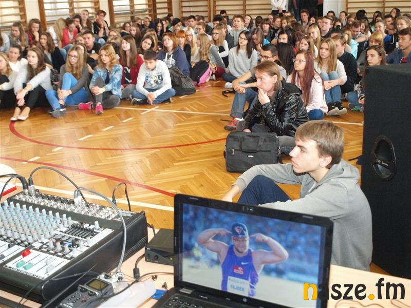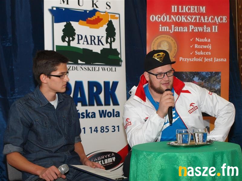 - Jechałem do Was 2 lata - żartował młociarz, którego do Zduńskiej Woli od dawna zapraszał Tomasz Szewczyk, trener lekkoatletów w klubie PARK. Mistrz świata opowiadał o początkach swojej kariery, o najlepszych momentach, które przeżył na stadionach całego świata oraz o ciężkich treningach na siłowni. Paweł Fajdek natychmiast znalazł z młodzieżą współny jęszyk, a jego odpowiedzi na niektóre pytania wzbudzały salwy śmiechu wśród słuchaczy. Mistrz świata z Pekinu zaskoczył wszystkich odpowiedzią na pytanie, jaka była jego pierwsza myśl w momencie odbierania złotego medalu? Lekkkoatleta przyznał, że myślał przede wszystkim o stroju swoim i kolegi z reprezentacji Wojciecha Nowickiego (nasi reprezentancji stanęli na podium w różnych strojach) i o tym, że obydwaj nie prezentowali się w jednolitych, biało-czerwonych barwach. Pod koniec spotkania Fajdek dał kilka bezcennych rad zawodnikom trenującym w MUKS PARK, szczególnie młodym adeptom rzutu młotem. Były oczywiście wspólne zdjęcia i mnóstwo złożonych autografów.