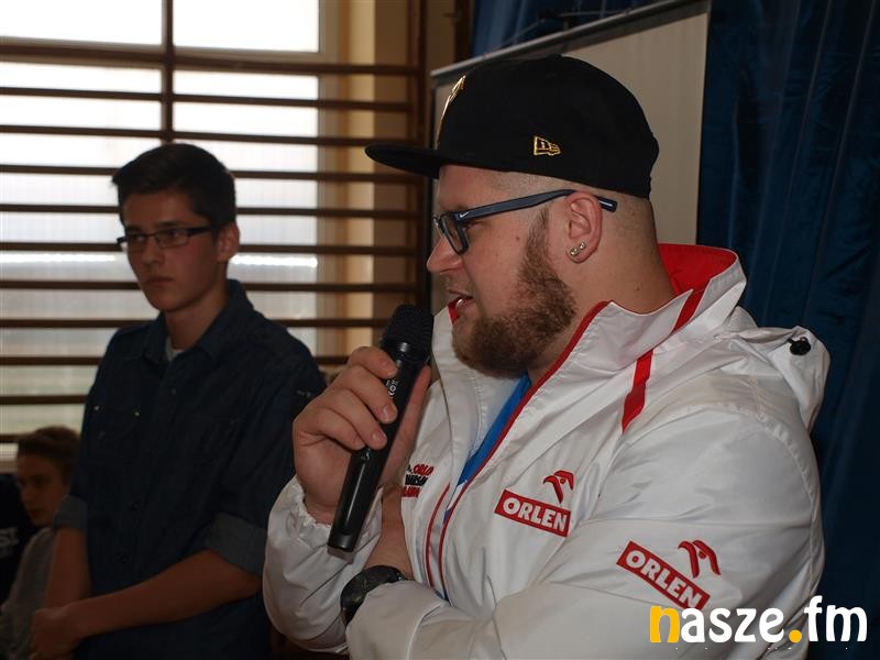 Z młodzieżą II Liceum Ogólnokształcącego w Zduńskiej Woli oraz z zawodnikami MUKS PARK spotkał się dziś dwukrotny mistrz świata w rzucie młotem Paweł Fajdek.