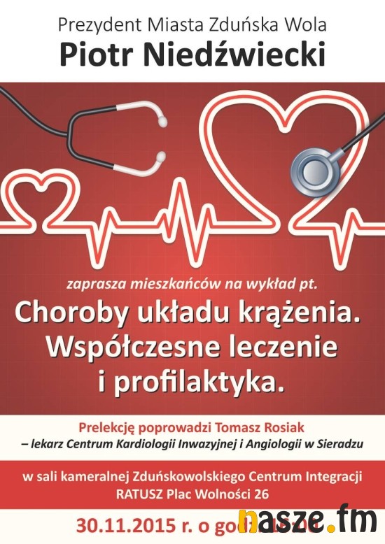 Prelekcję na temat chorób układu krążenia wygłosi Tomasz Rosiak - lekarza Centrum Kardiologii Inwazyjnej i Angiologii w Sieradzu. Spotkanie odbędzie się w sali kameralnej placówki. Początek o godz. 16:00. Wstęp wolny.